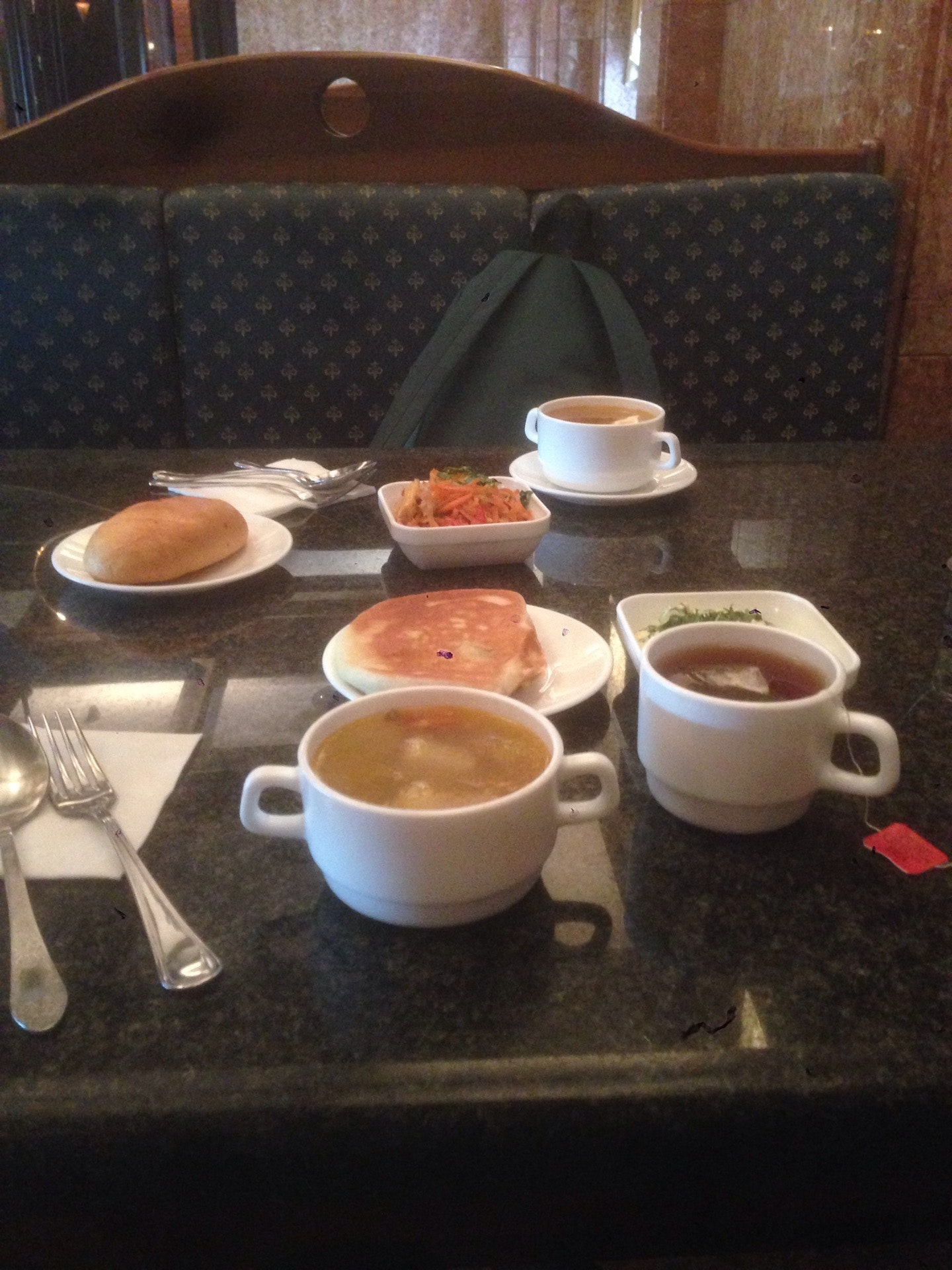 Официантка так быстро выдергивает из-под носа освободившиеся подносы и посуду, что создается впечатление перманентной нехватки оных.